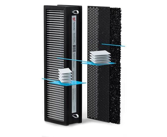 Эффективная очистка воздуха обеспечивается 5-ступенчатой системой фильтрации, состоящей из сетчатого фильтра предварительной очистки, механического фильтра тонкой очистки F7 и комбинированного механического и угольного фильтра H12 + carbon, который препятствует проникновению неприятного запаха и задерживает мельчайшие частицы пыли и аллергенов, очищая воздух до 99,5%. Встроенный ионизатор увеличивает качество воздуха, повышая работоспособность и улучшая самочувствие.